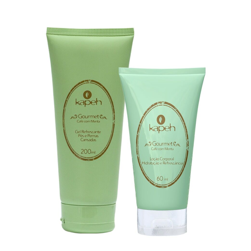 Contém: 1 Gel Pernas Cansadas CAFÉ/MENTA Gourmet | 1 Hidratante CAFÉ/MENTA Gourmet 60ml