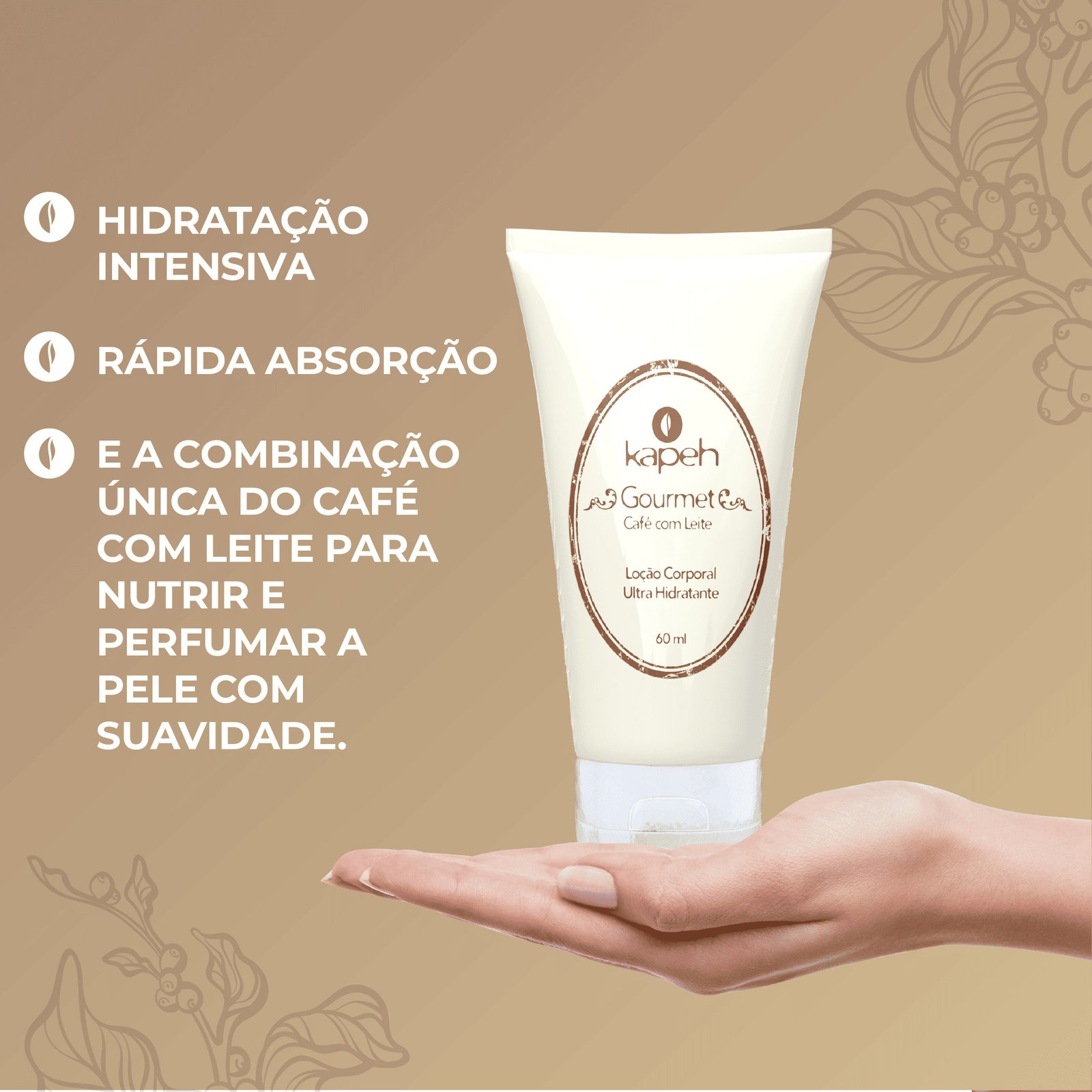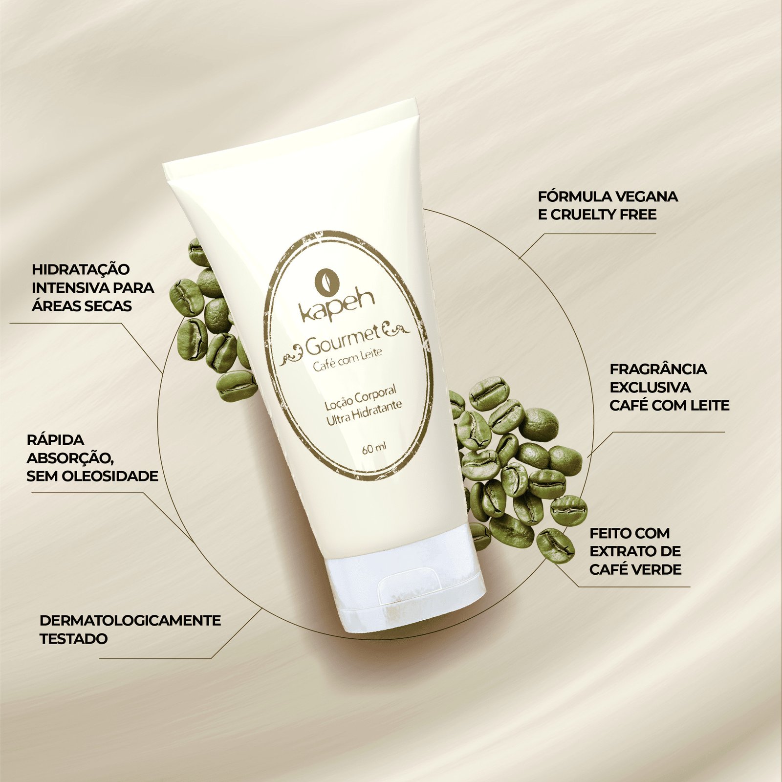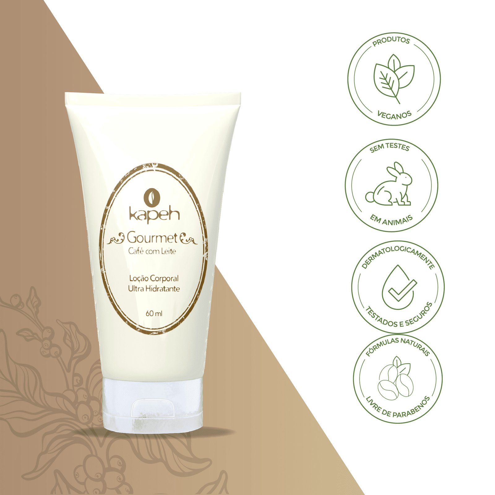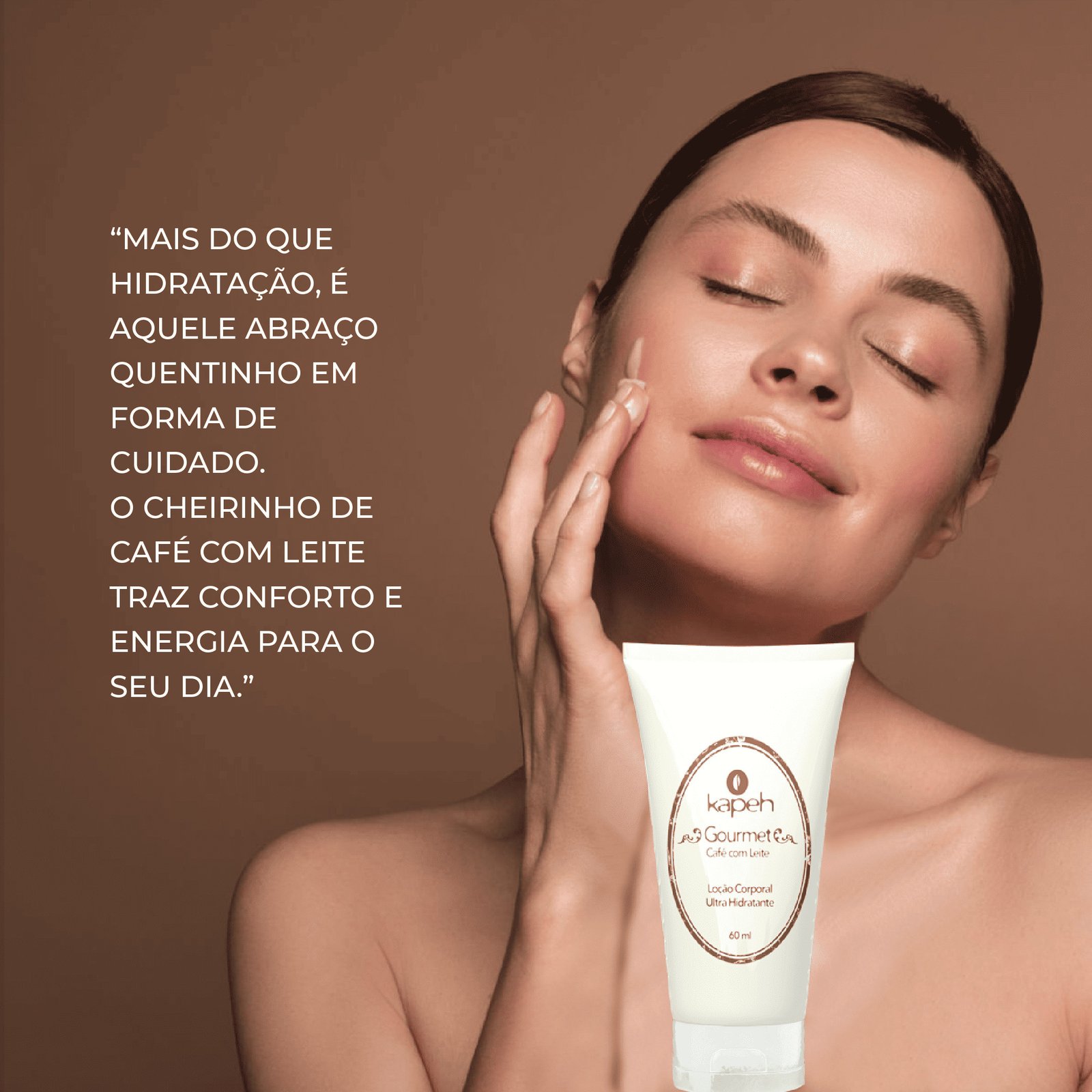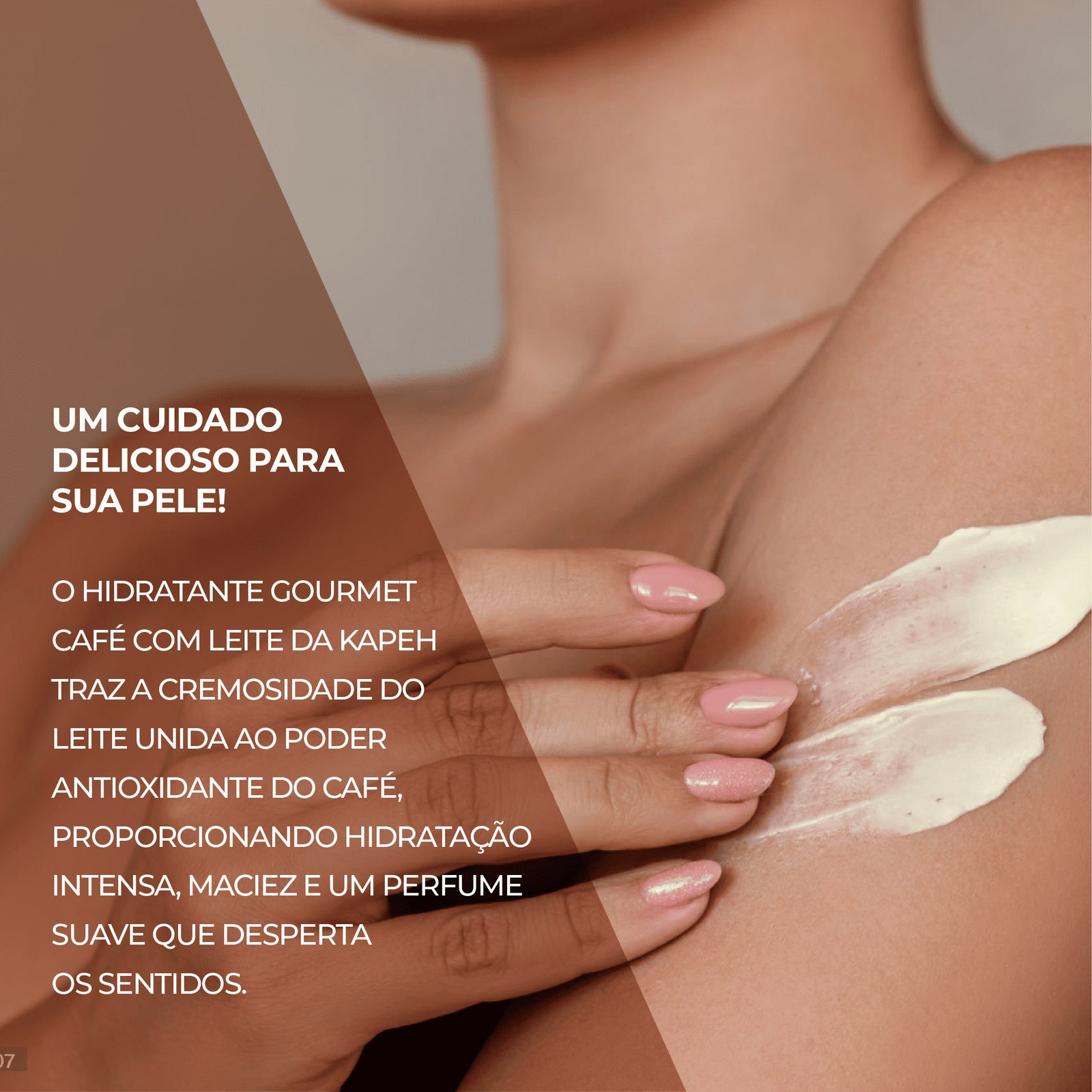 A Loção Hidratante Café com Leite Kapeh possui fórmula feita à base de Extrato Oleoso de Café, enriquecida com outros agentes emolientes que promove hidratação intensa e prolongada, deixando-a mais resistente e macia.