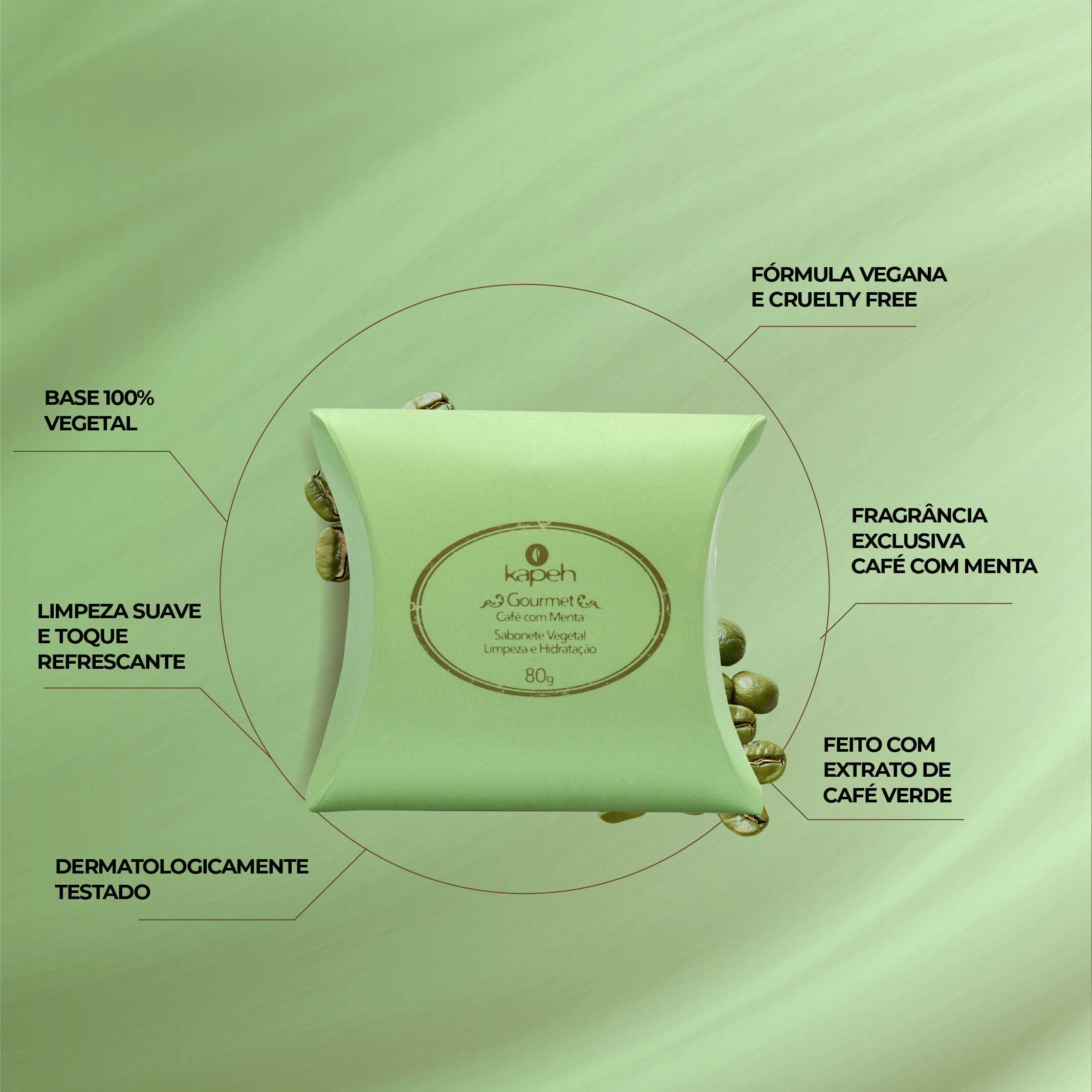 | Informações | Sabonete Vegetal Café com Menta Kapeh 80g