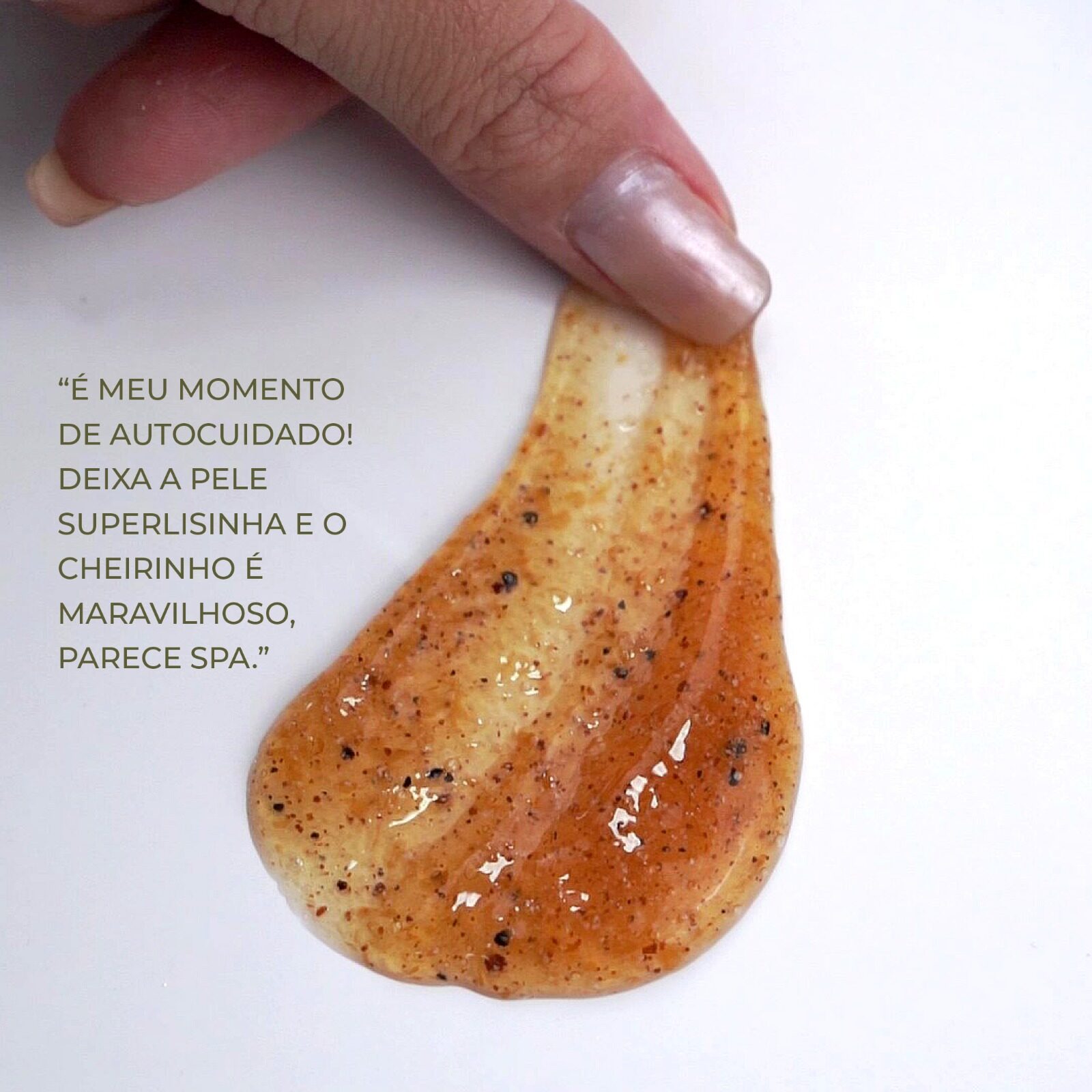 Fórmula revitalizante e energizante feita à base do Extrato de Café Verde, enriquecida com agentes esfoliantes de origem vegetal e derivados do café, como os grãos torrados e moídos e os microgrânulos da casca do café, que limpam e esfoliam a pele, removendo as células mortas, deixando-a macia e suavemente perfumada. |