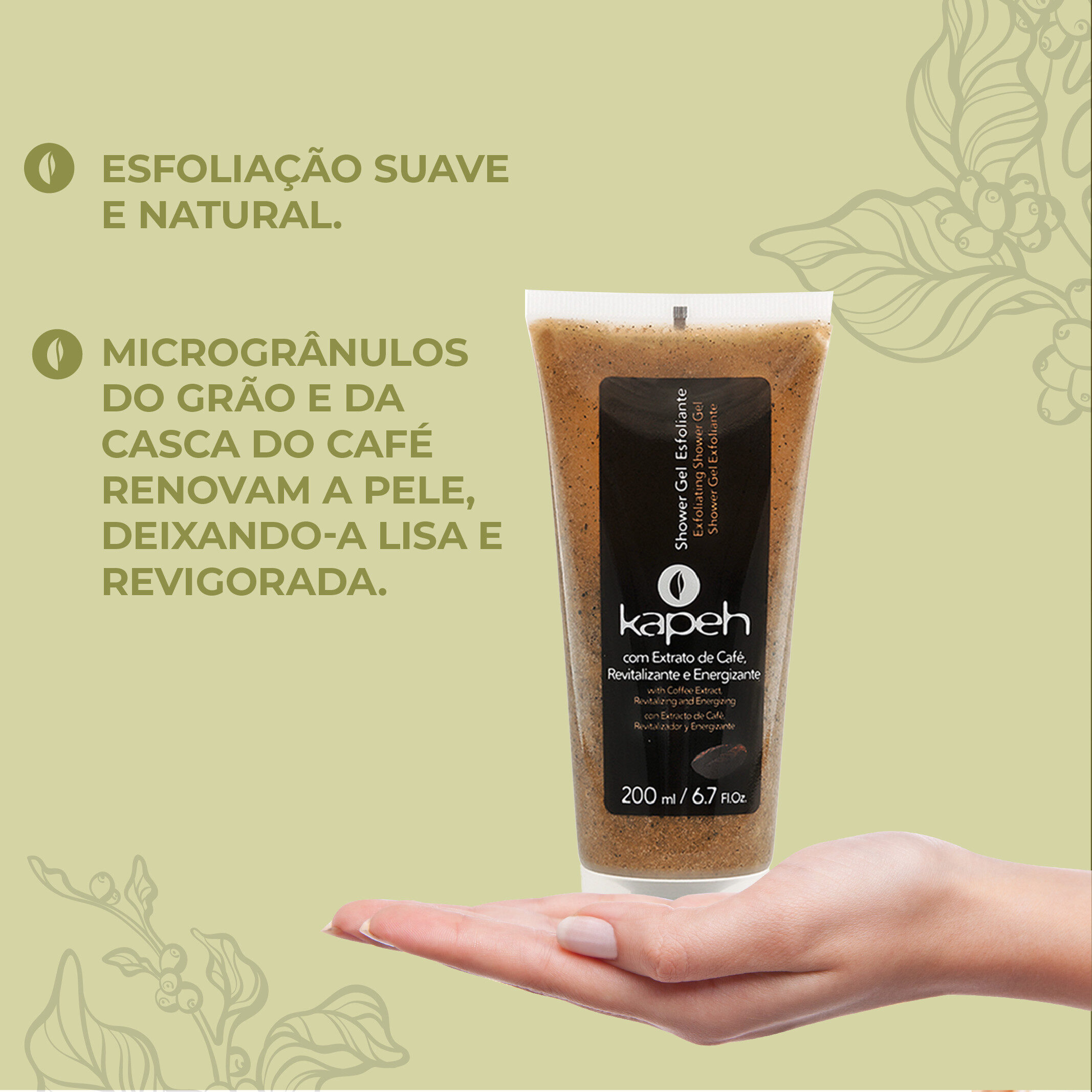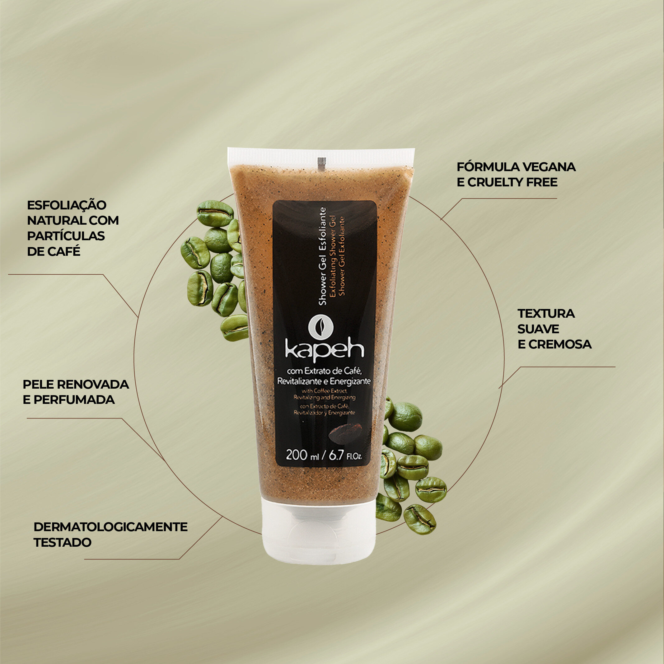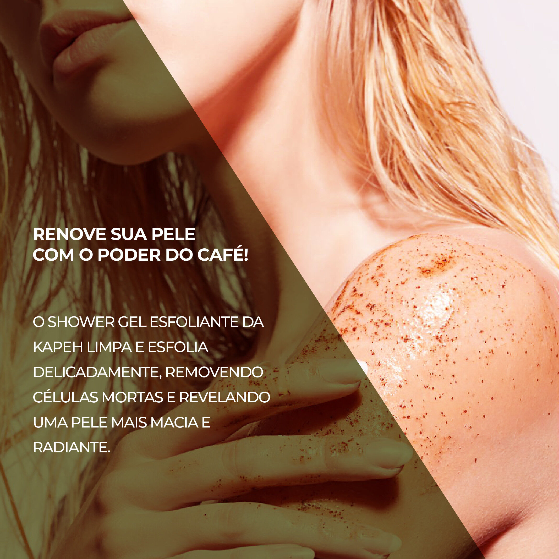 O Shower Gel Esfoliante Kapeh é um delicioso e suave esfoliante com café que renova a pele e trás de volta toda a energia que você precisa! A tecnologia Kapeh combinada com o aroma delicado da essência de café verde.